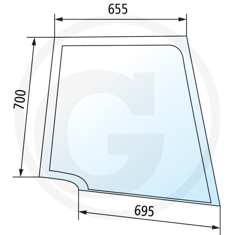 Szyba drzwi górna prawa New Holland TD55D, TD65D, TD75D, TD85D, TD95D