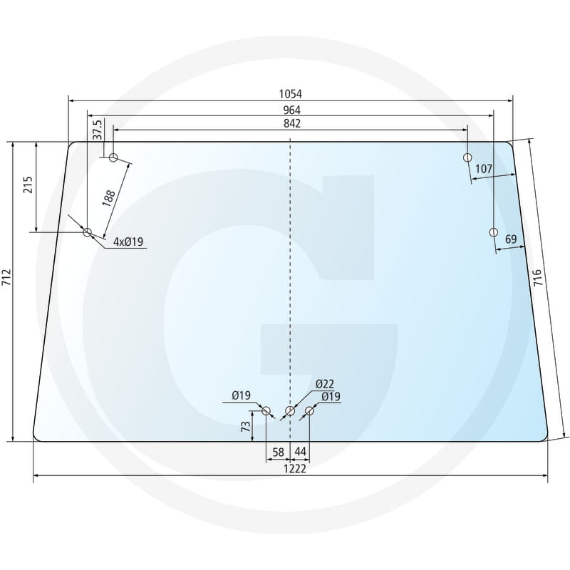Szyba przednia Deutz-Fahr AgroPrima 4.31, AgroPrima 4.51, AgroPrima 4.56, AgroPrima 6.06, AgroPrima 6.16, AgroXtra 3.57, AgroXtra 4.07, AgroXtra 4.17, AgroXtra 4.47, AgroXtra 4.57, AgroXtra 6.07, AgroXtra 6.17, DX 3.10, DX 3.30, DX 3.50, DX 3.60, DX 3.65,