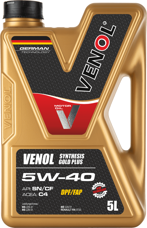 VENOL Synthesis Gold Ultra Plus SN/CF 5W/40 to zaawansowany olej silnikowy przeznaczony do zastosowania w nowoczesnych samochodach, zarówno z silnikami Diesla, jak i benzynowymi, pracującymi w różnych warunkach eksploatacji. Jest szczególnie rekomendowany do silników wyposażonych w DPF (filtr cząstek stałych) oraz TWC (katalizator trójfunkcyjny), a także do pojazdów spełniających normy Euro 6.